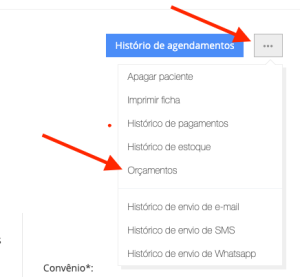 III. Clique no botão “…” ao lado de “Histórico de agendamentos” e depois em “Orçamentos“;